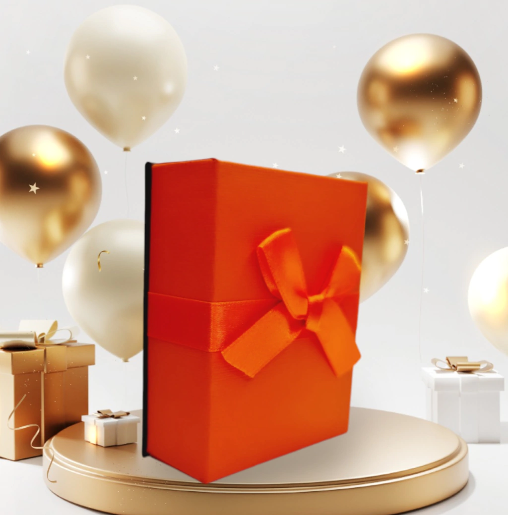 Caixa com Laço - Caixa Perolada Laranja e Base Preta Com Laço 9x7x3cm é um modelo ótimo para presentear com Pingente, Berloque, Anel, Brinco Pequeno, Conjunto de Colar e Brinco, Pulseiras e Par de Alianças.